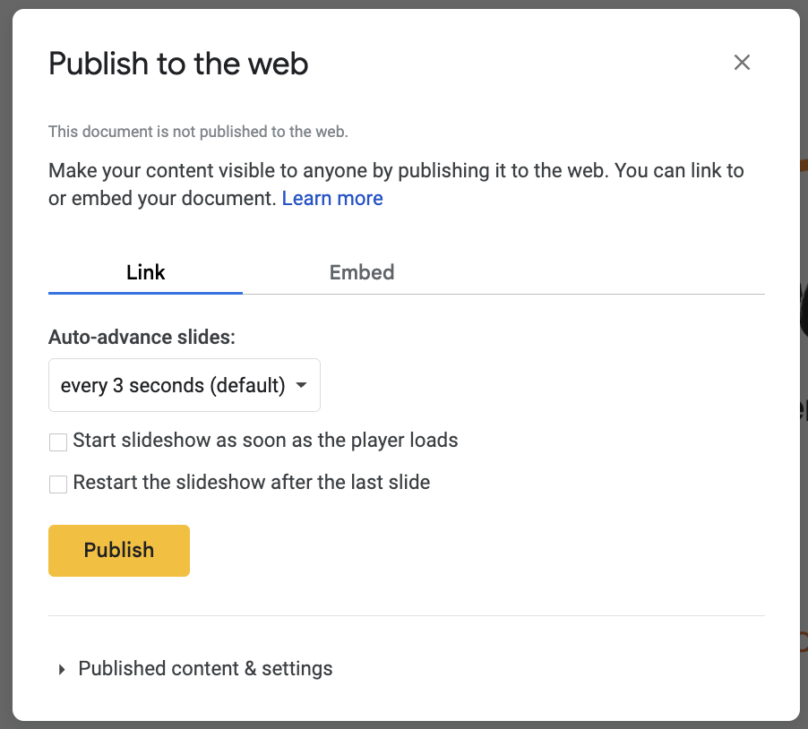 How to publish a Google Slides presentation: