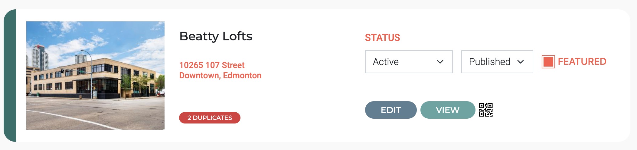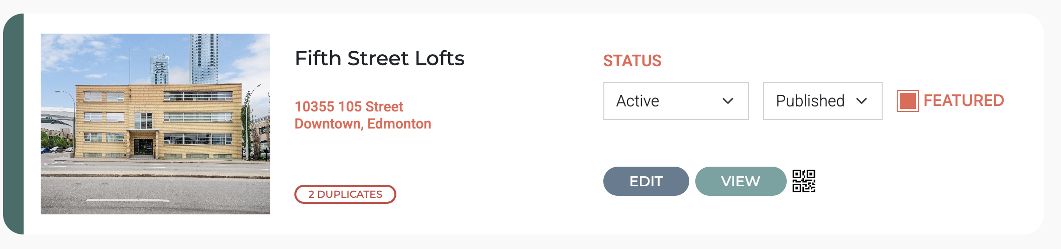 When you add or modify a building in Buildings Management on your Brixwork Website, make sure there are no duplicate entries. Duplicates can prevent listings from displaying properly under the correct building.