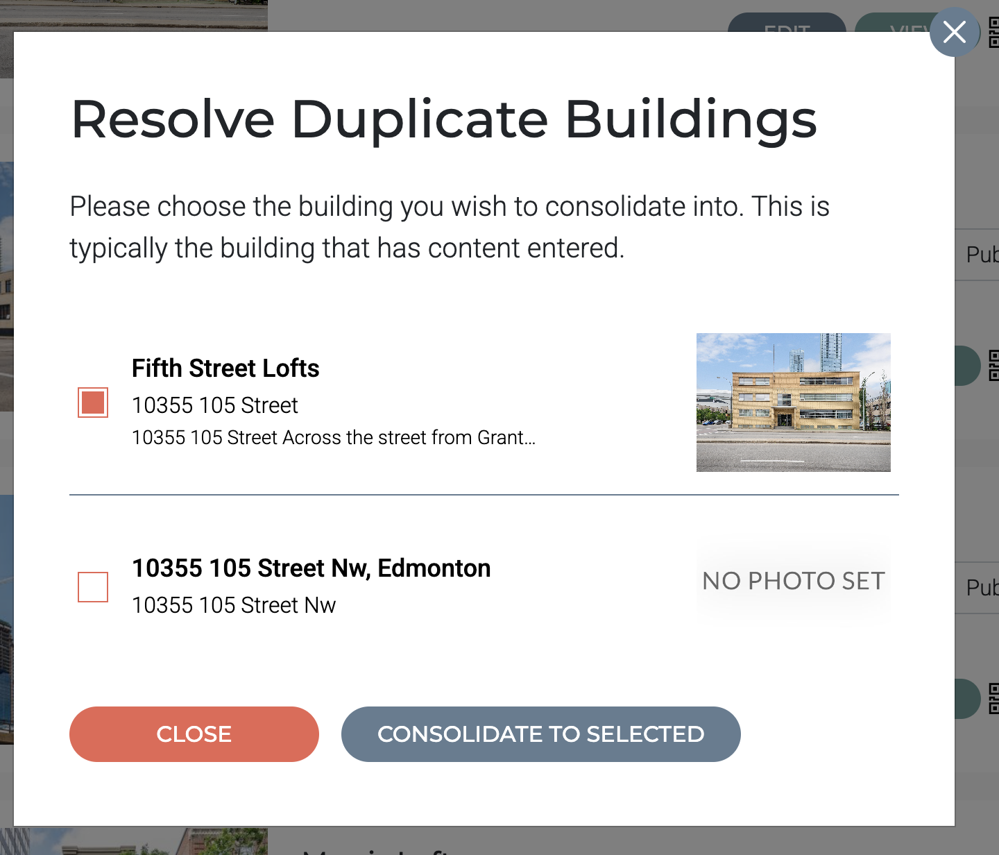 3. A pop-up window titled “Resolve Duplicate Buildings” will appear.